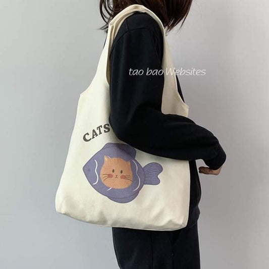 C044, New style canvas bag women's one-shoulder Japanese cute Korean style ins large-capacity students in class portable vest canvas bag