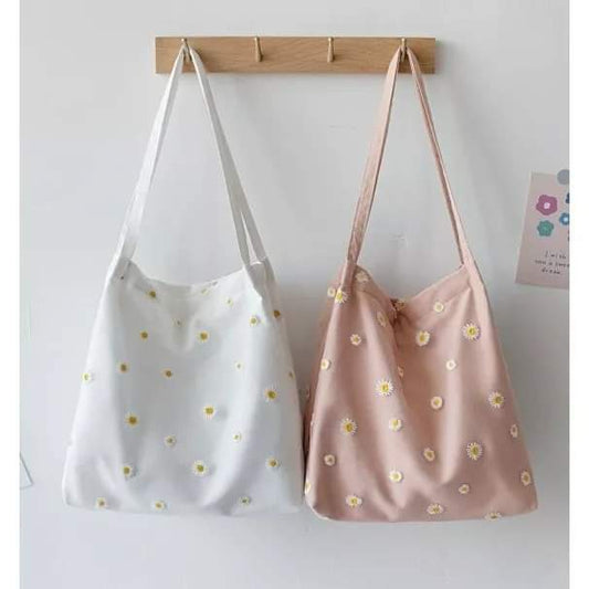 c056, Canvas shoulder bag, double layer daisy pattern, Korean style
