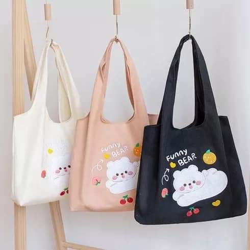 c034,Canvas bag, large FUNNY BEAR pattern,cute korean look