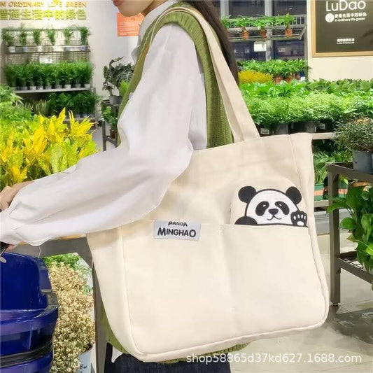 C060, Panda Canvas Bag အသစ် ပါ၀င်သော ရိုးရှင်းသော ဖက်ရှင်လက်ကိုင်အိတ်