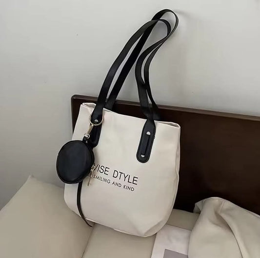 c099, Canvas shoulder bag, tote shape, large capacity, can hold a lot of things, simple style
