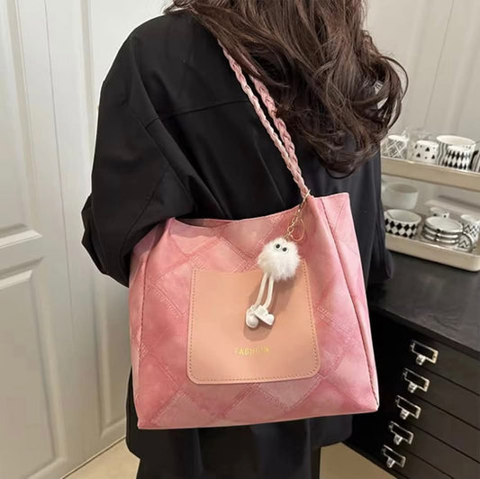 C096, Large Capacity Bag Women's 2025 New Autumn Versatile Simple Shoulder Bag Fashionable Commuting Tote Bucket Bag