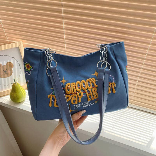 C73, 2025 autumn new canvas women's bag large capacity fashion leisure ins lazy style shoulder bag trendy tote bag women
