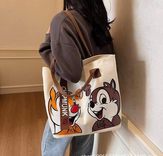 C97, New canvas bag for women 2025 new cute cartoon handbag casual versatile large capacity shoulder tote bag