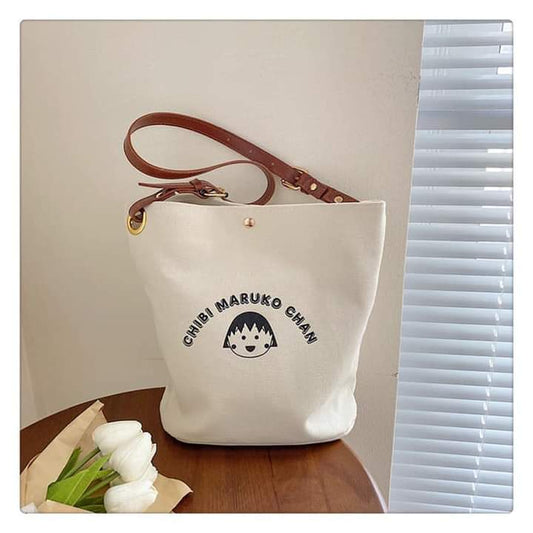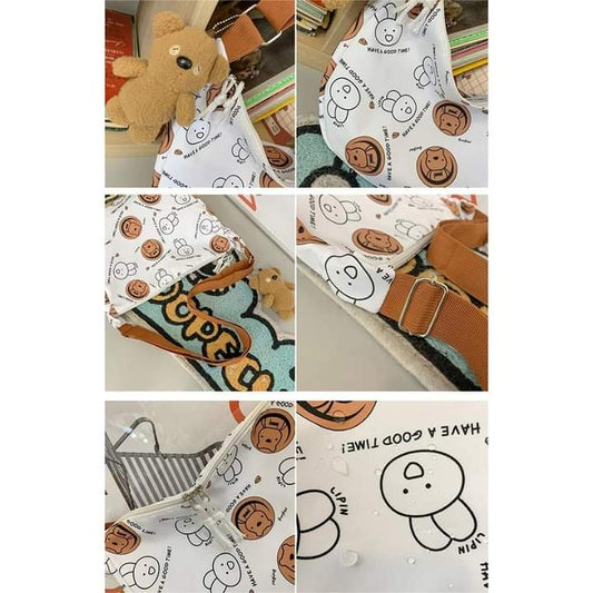 M012, 2023 new cute bucket bag tide South Korea Dongdaemun printing simple shoulder bag puppy drawstring pocket canvas bag