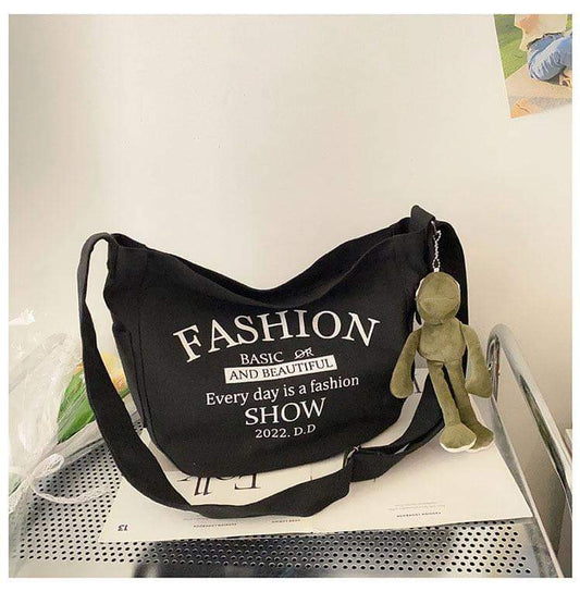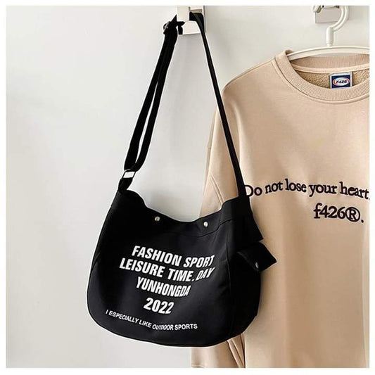 M014, “ Good time “ Letter canvas bag for women 2023 new trendy simple fashion tote bag student class large capacity messenger bag