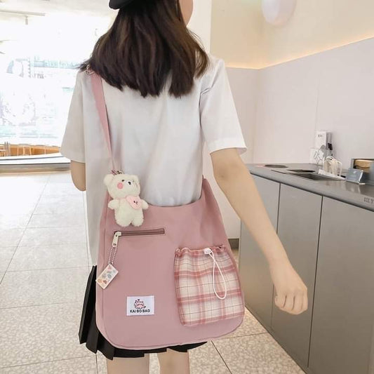 m019, shoulder bag Large clear compartment of plaid pattern. New style canvas bag.