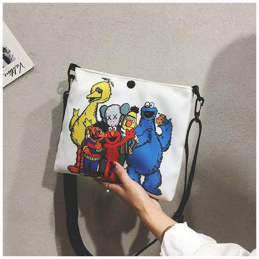 M030, Personality funny canvas small bag female new style Korean version student stylish girl shoulder crossbody small round bag