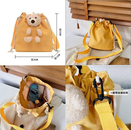 M77, Cute small bag female 2023 new Korean style fashion bear shoulder bag casual girl drawstring bucket bag