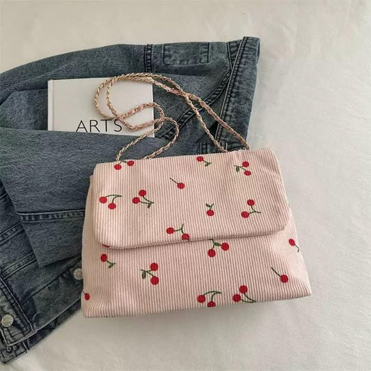 M76, 2024 Autumn and Winter New Canvas Bag Retro Corduroy Shoulder Bag Large Capacity Student Class Bag Versatile Crossbody Bag