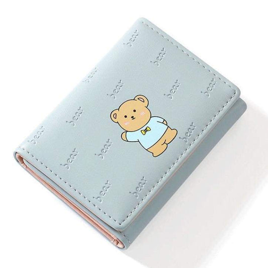 W063, New ins fashion student leather wallet cartoon bear multi-card slot three-fold short women's wallet