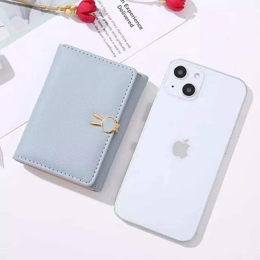w066, Rabbit Small Fresh Wallet Female Small Cute Student Ultra-Thin Short Coin Card Holder Folding Wallet