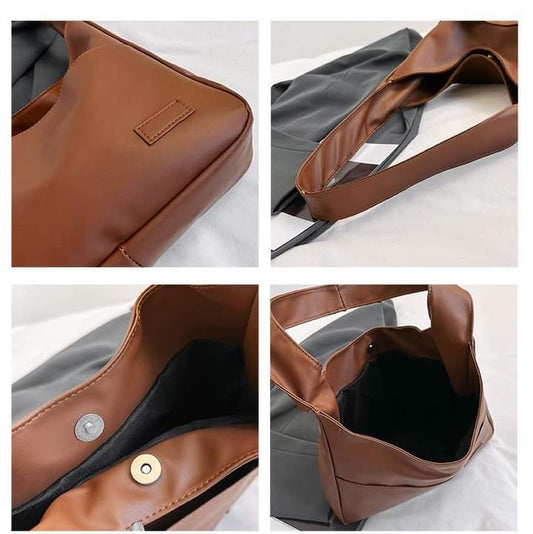 A045, Large capacity retro solid color autumn new texture tote bag college students class shoulder bag simple casual bag