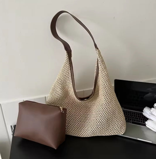 A046, Hand-woven bags for women 2024 summer new trendy tote bag simple large capacity one-shoulder straw bag ins style Size: 36* 34cm