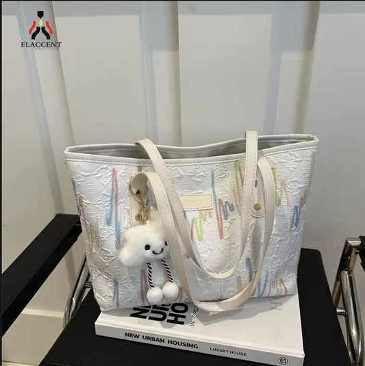 c012, Yunhi shoulder bag Soft velvet fabric, large size, can hold a lot of things, embroidered with a fashionable faux sheep cartoon pattern