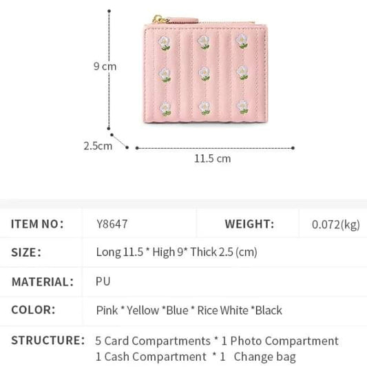 w028, Short wallet, embroidered with flowers, small size, portable, foldable, suitable for female students