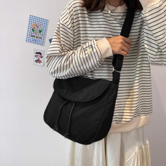 M068, Korean style all-match student ins Japanese Harajuku simple waffle literary one-shoulder solid color messenger bag