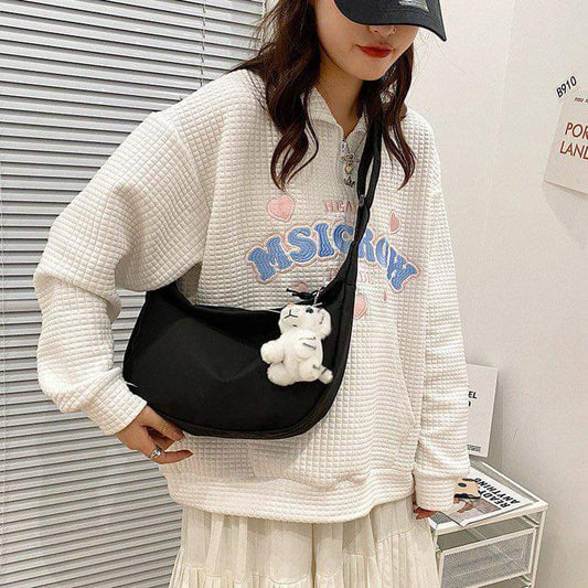 M013, Autumn and winter big bag women's 2022 new trendy nylon cloth texture dumpling bag simple messenger crescent bag commuter armpit bag