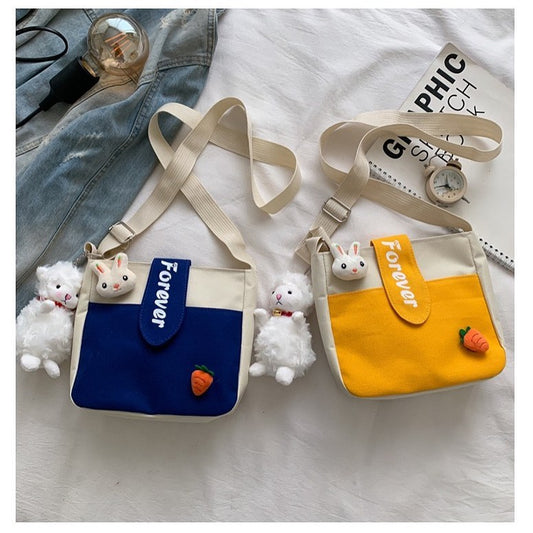 M091 ,Canvas bag female 2022 Korean version ins messenger bag literary canvas bag shoulder bag female college student class bag
