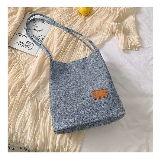 C52 Canvas bag women's one-shoulder Korean version ins retro simple literary corduroy lazy wind large-capacity portable shopping bag