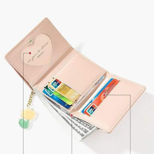 w031, Short wallet, tulip pattern, thin, good design, simple, for women.