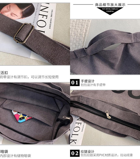 M001 New canvas bag women's shoulder handbag student cute Korean ins literary canvas bag