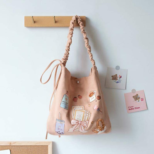 c033 Bear bag canvas bag women's one-shoulder Japanese Korean version ins cute literature and art large-capacity student class handbag