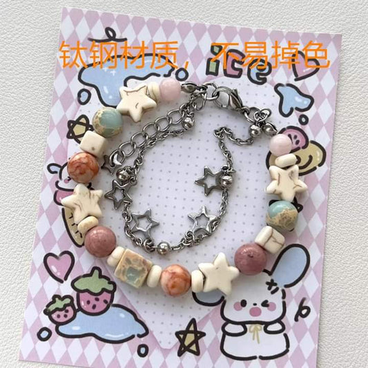 G008, Pluto/Couple Style White Turquoise Bracelet Original Student Couple Beaded Bracelet Gift